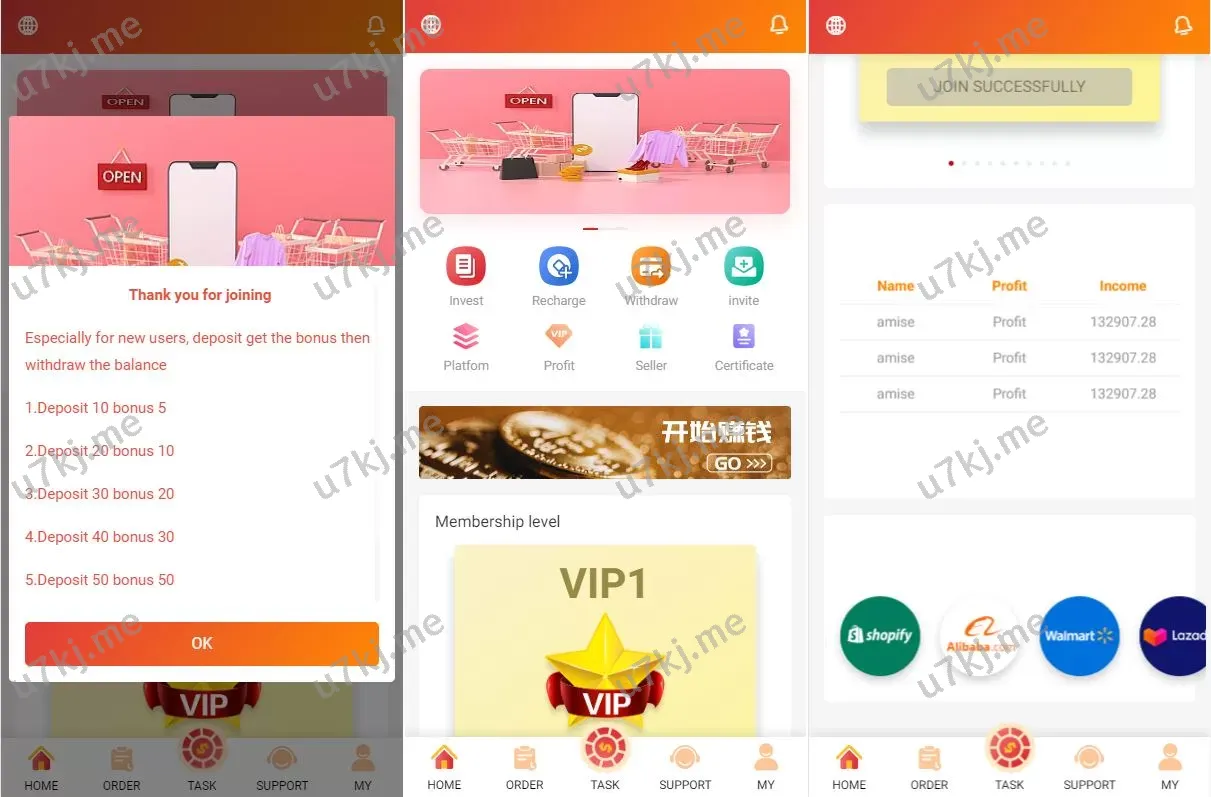 - 订单自动匹配,会员完成任务赚取佣金,流程更智能