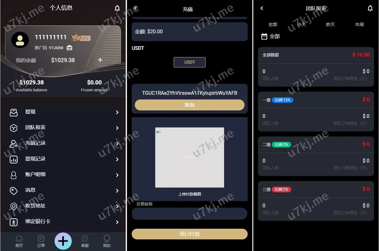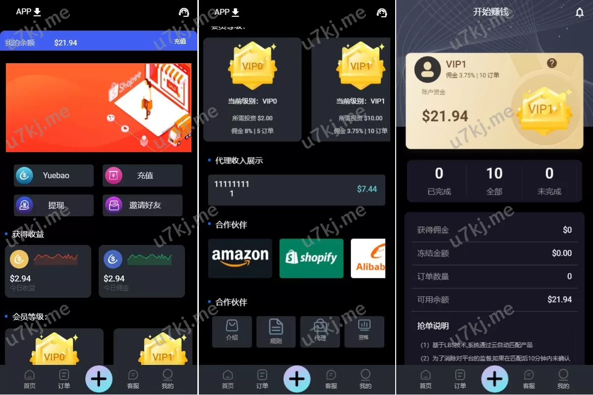 - 智能订单匹配,会员自动匹配订单,获得佣金收益