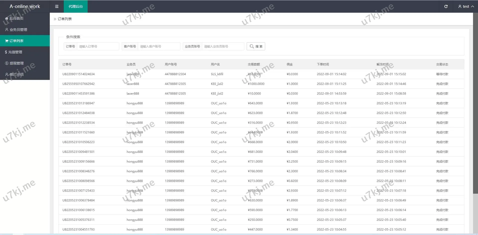 - 单独代理后台,支持代理管理团队及收益分配