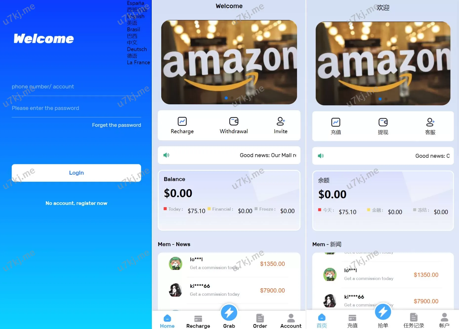 多个语言亚马逊自动抓取订单返佣源码源码_叠加组+电商抢单刷单平台