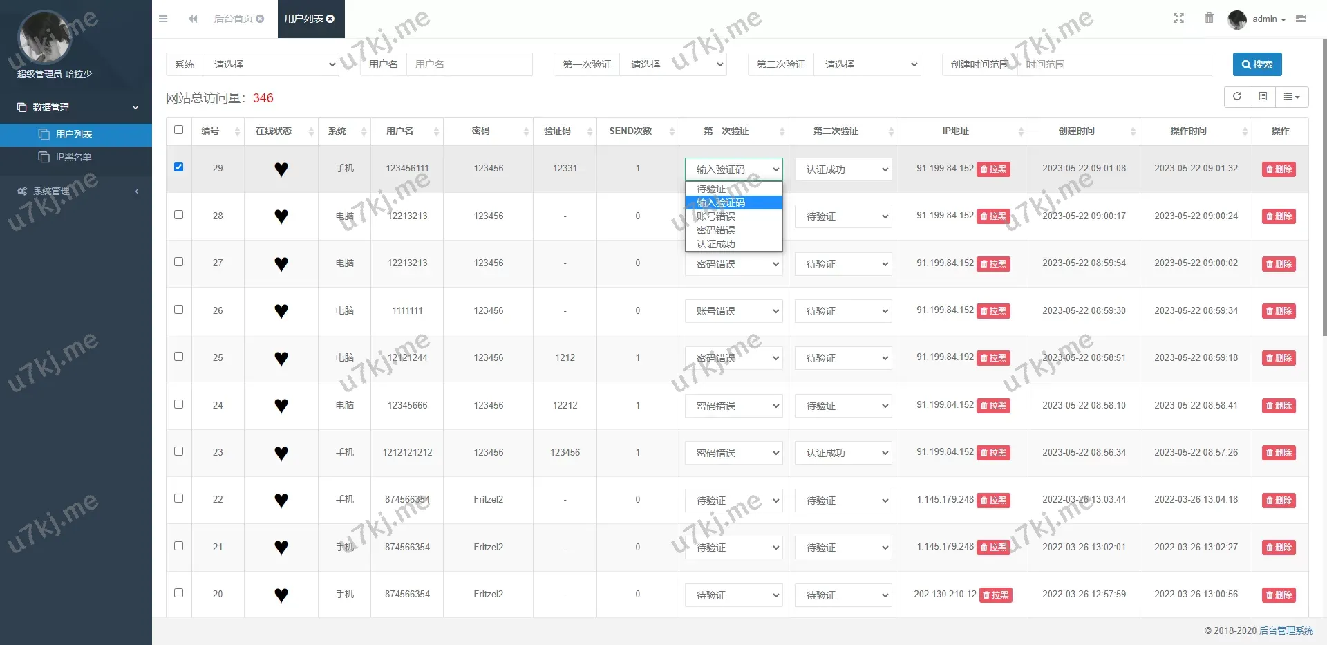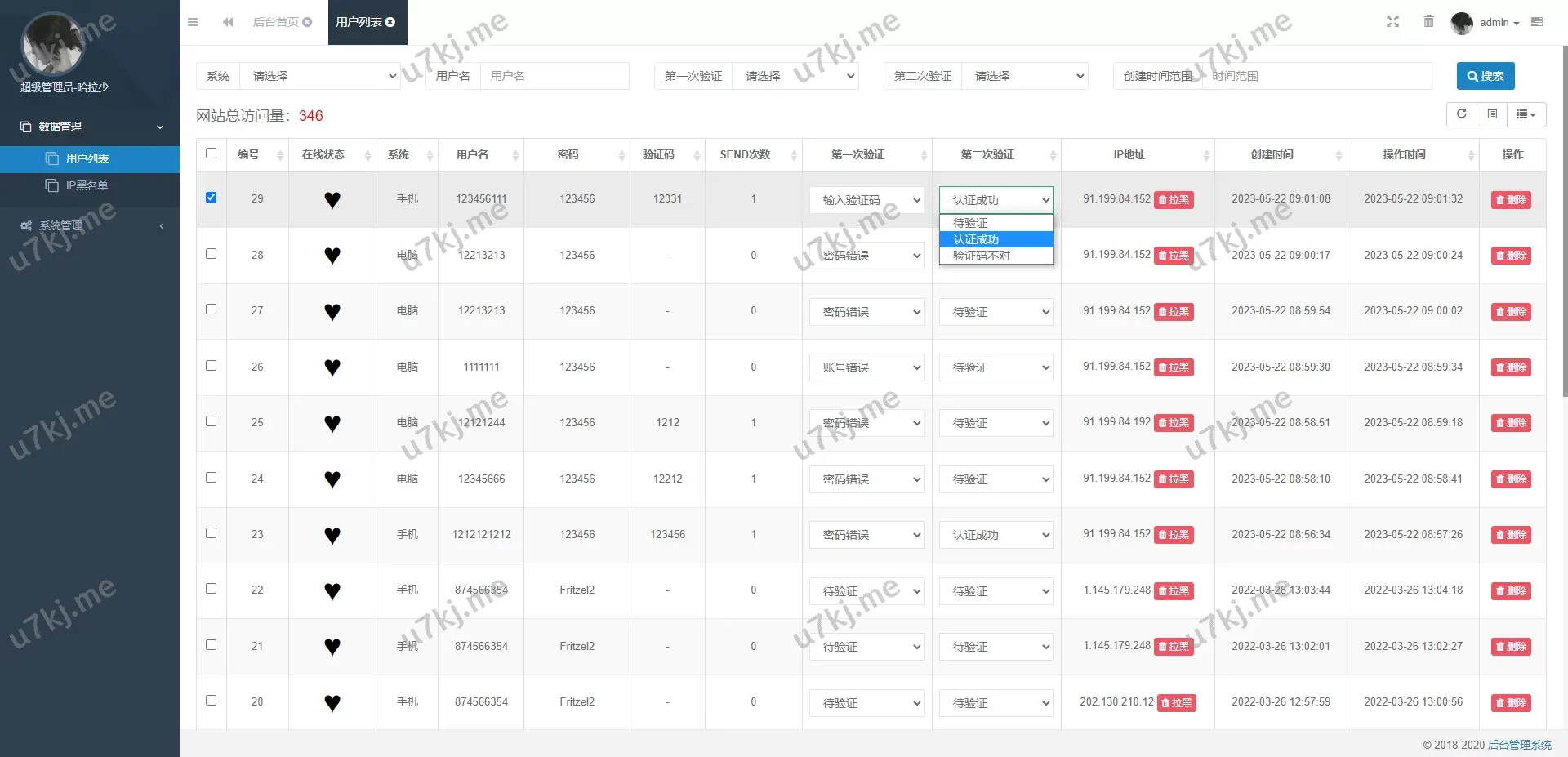 前台用户登录可设置账号密码错误、获取验证码、二次验证
