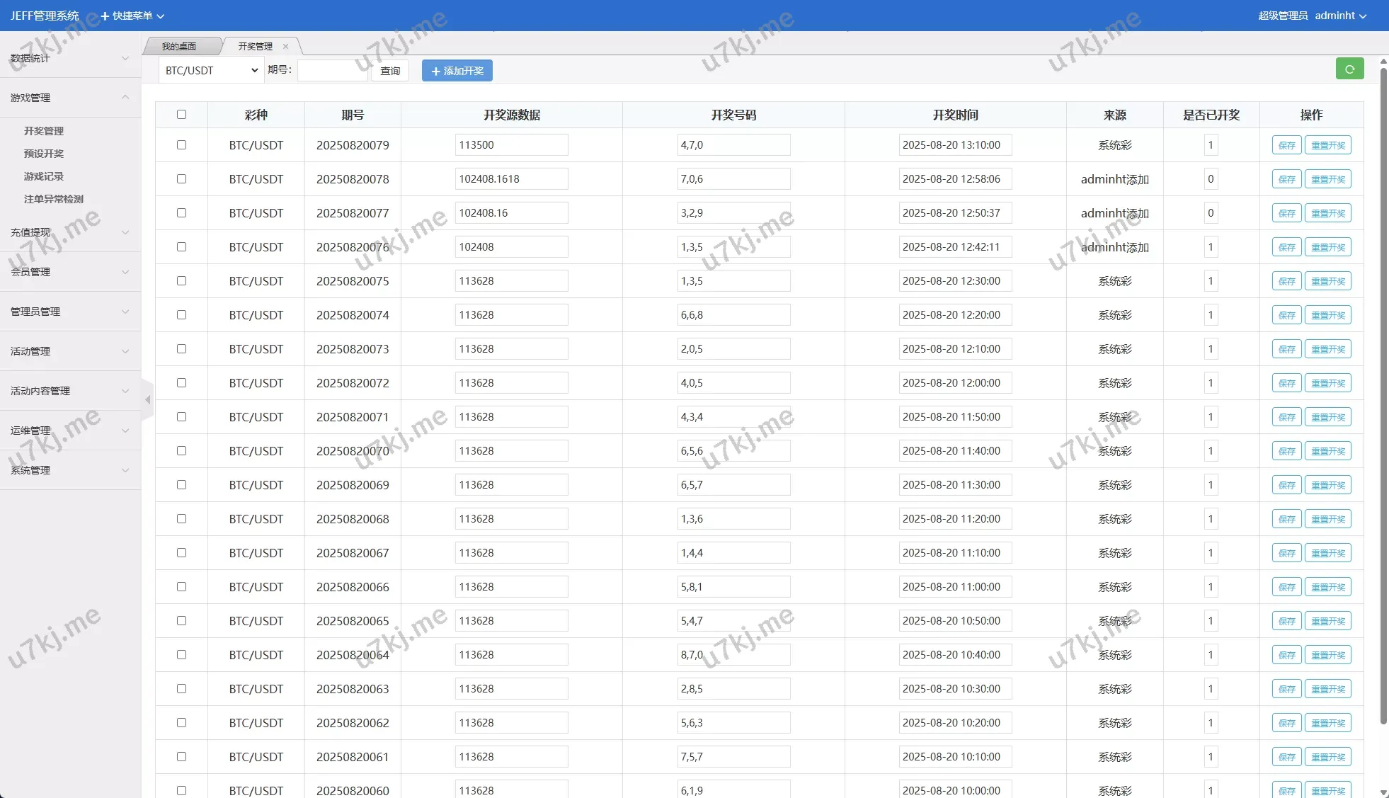 后端基于彩票源码二开彩种都是源码菜,后台可以预设开奖