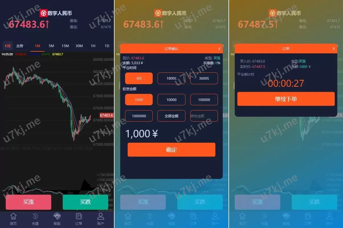 PC自适应微盘交易源码源码/伪交易所/利息宝/单控全控 主要功能亮点: UI微盘源码,支持PC与手机自适应,用户体验更佳 新增利息宝功能,支持存入增息收益模式 单控/全控模式,灵活掌控交易动态 错单管理,防止异常订单影响收益 注册即送彩金,吸引用户参与交易 K线风控波动范围可自定义调整,数据更安全可控 后端采用ThinkPHP框架,源码全开源,带完整教程 微盘源码