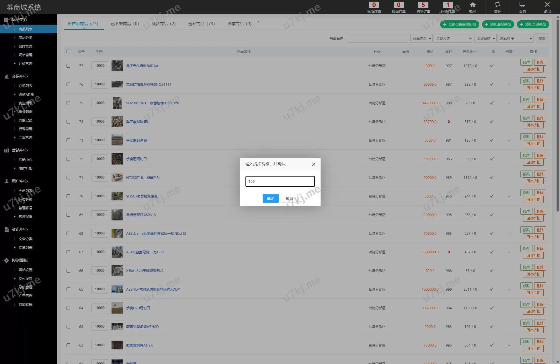 用户可以实时查看旧金属回收订单的状态,源码自动处理订单的生成、审核、付款及发货等环节,并支持订单的追踪与查询,确保订单的透明性与高效性。 - 自定义设置功能