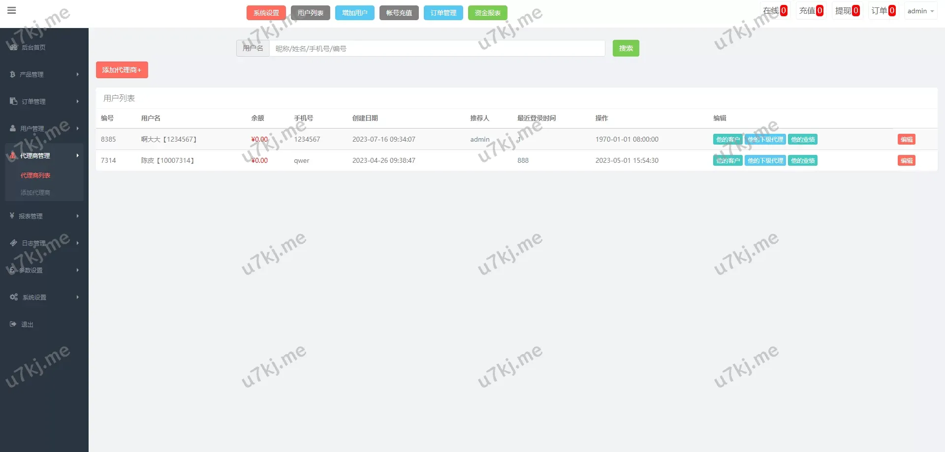 ✅ 代理后台管理:新增代理后台,方便管理代理商和用户