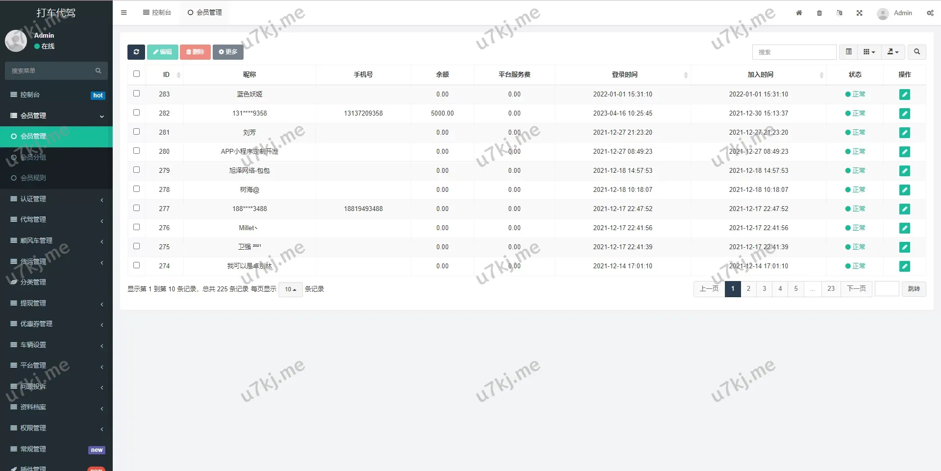 ✅ 管理后台强大:提供订单管理、用户管理、数据统计、财务结算等功能。