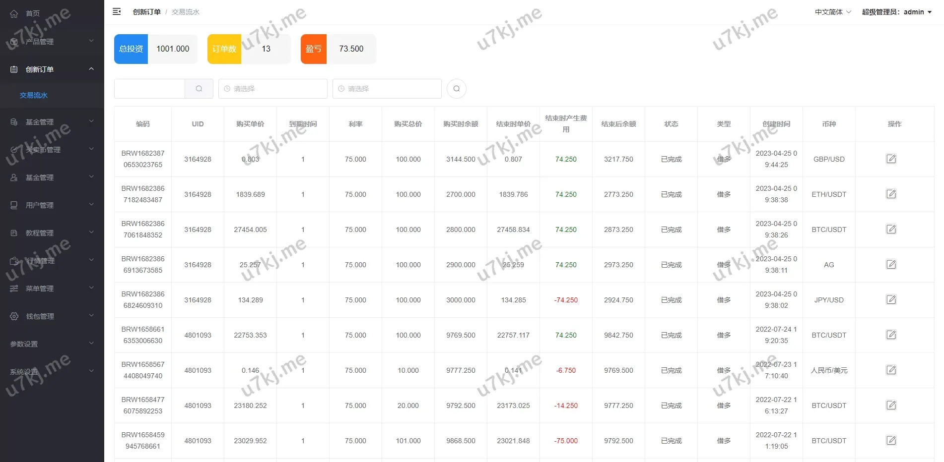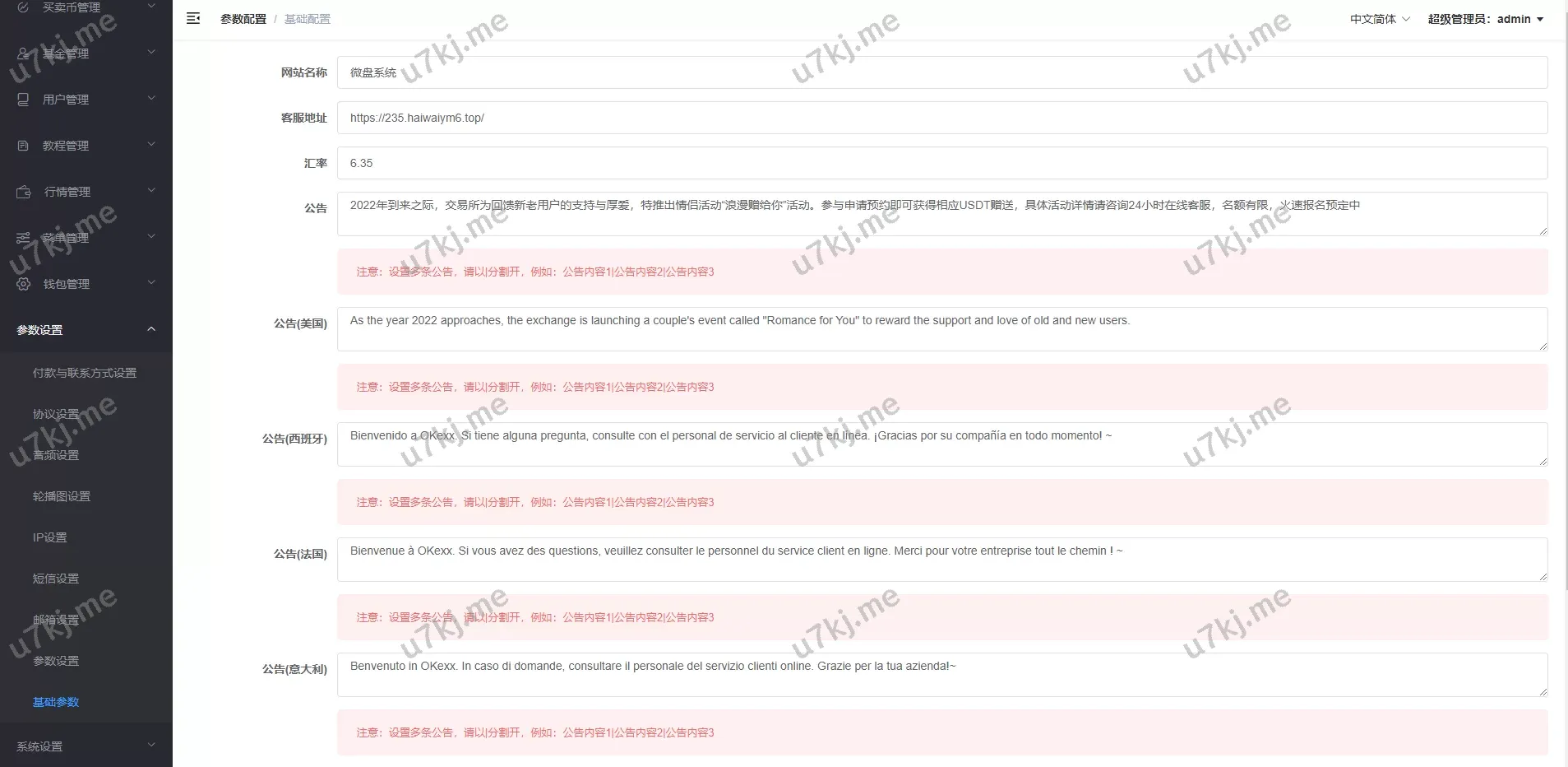 ✅ 后台功能丰富:包括理财、挖矿、法币等功能选项,但需二开后端界面进行展示