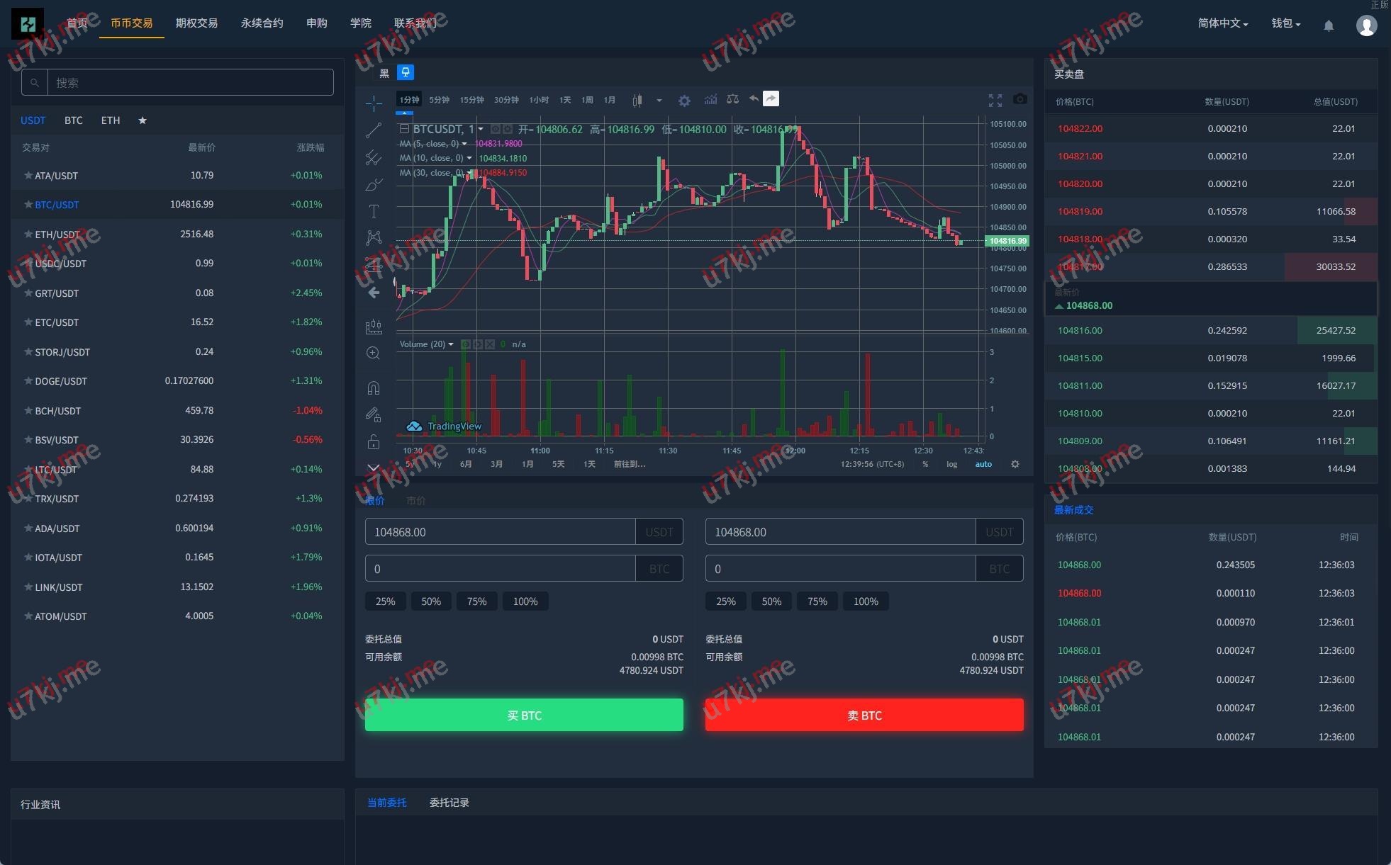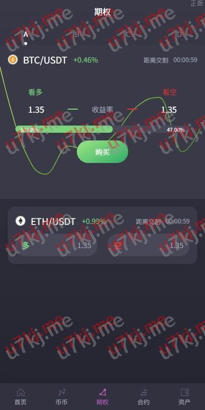 功能:币币交易,挖矿理财,申购新币,系统发行币,合约杠杆,秒合约交易,期权交易,平台币