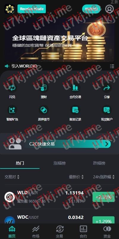 系统功能:永续合约、交割合约、现货交易、理财、矿池、质押借币、C2C等功能
