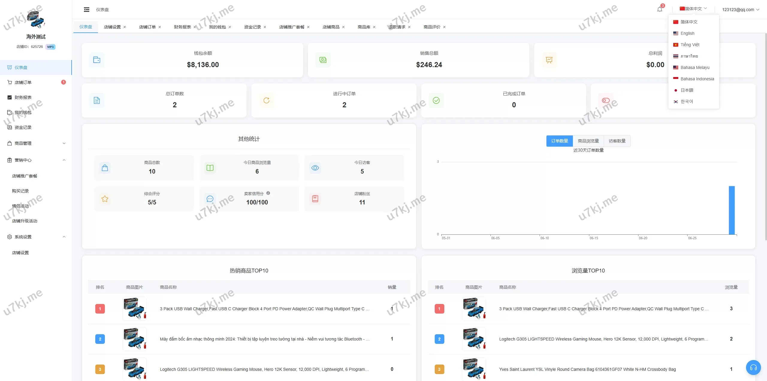 跨境电商源码/多个语言商城/商家入驻/一键铺货后台下单 用户端-商户端-注册端-后台均为VUE开发,服务端JAVA开发全开源带源码源码无商品需要自己添加,支持设置商户访问量,信誉分,关注人数,后台手动下单等功能 商城系统