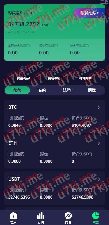 功能支持:合约、期权、币币、认购、锁仓质押、理财、跟单、实名认证等功能