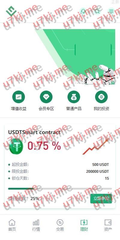 币币、U本位合约、秒合约、质押挖矿、助力贷、理财、代理、Ai智能控盘、推广三级分销等功能