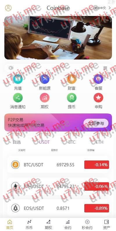 多个语言交易所系统 秒合约 期权 合约 新币申购 投资理财
