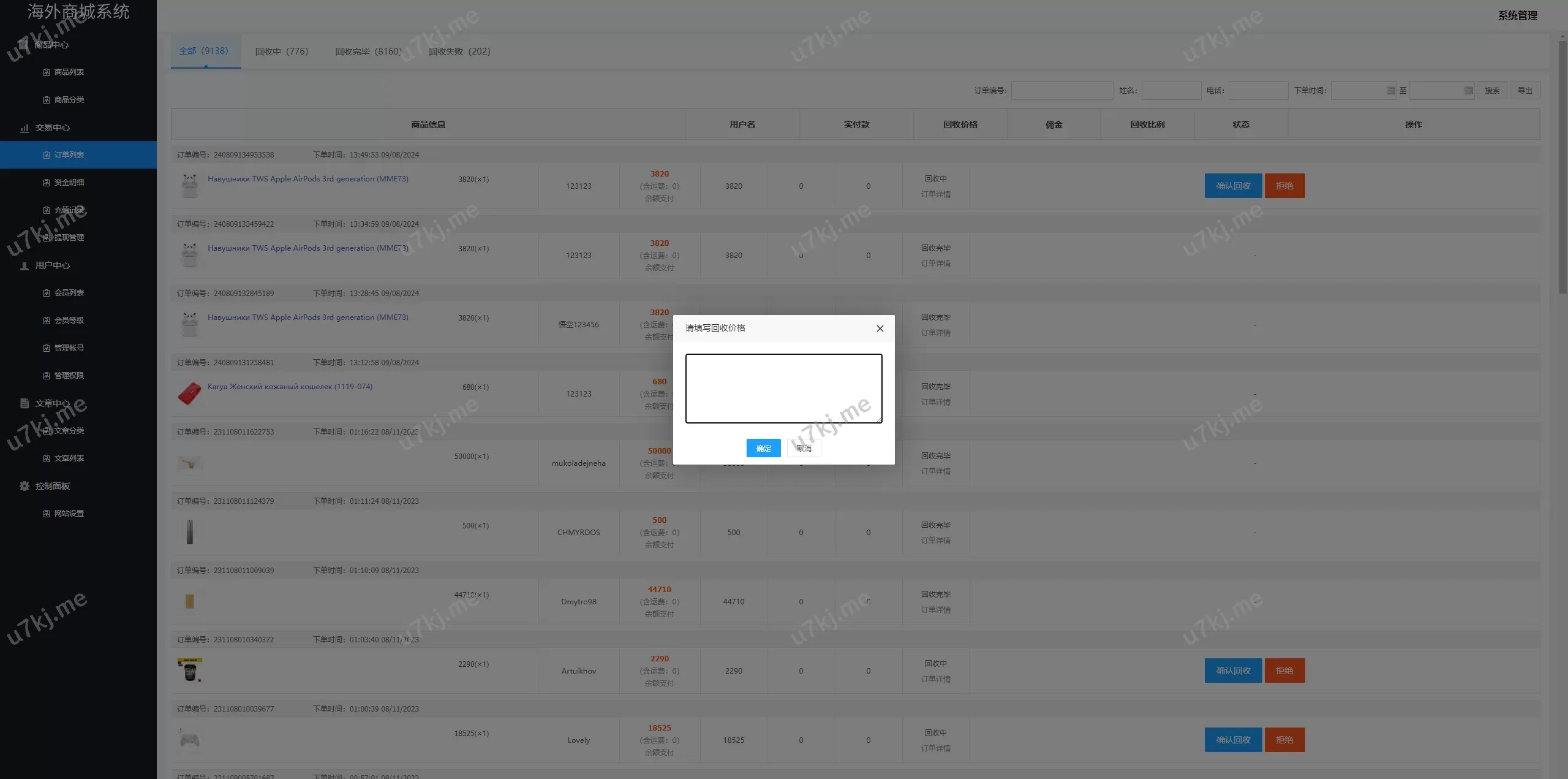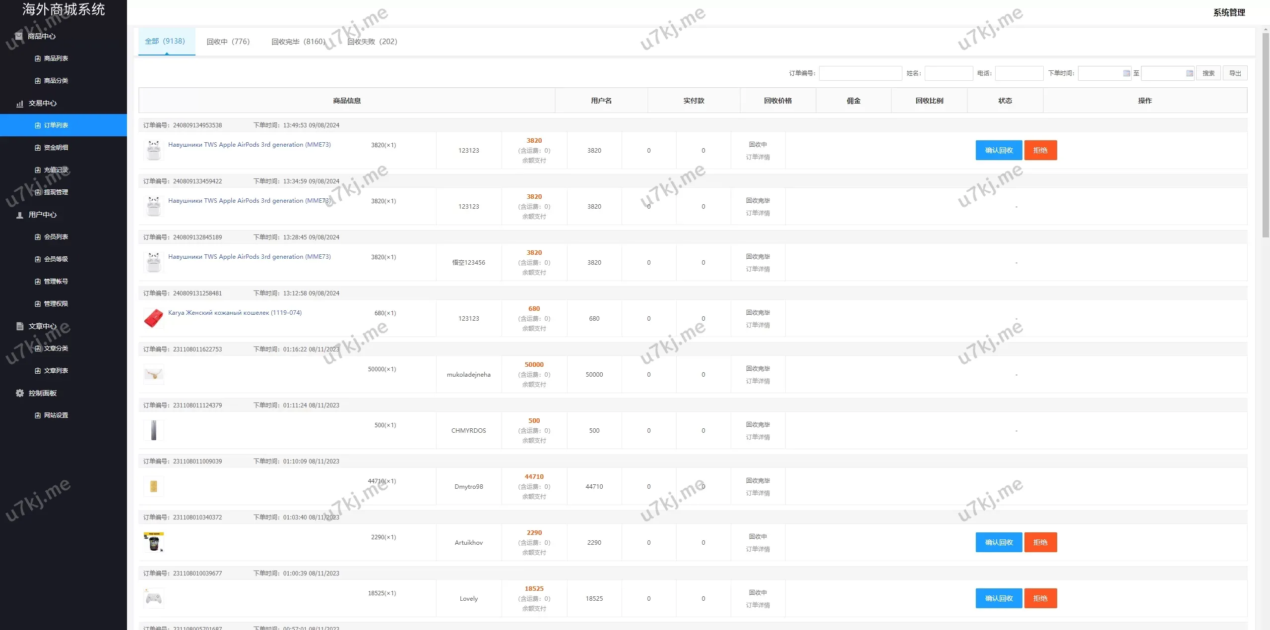 多个语言商城回收源码源码/订单自定义价格回收/商城订单回收 主要功能亮点: 定制UI:前后端UI重新二开定制,提供更好的用户体验 多个语言支持:新增多个语言支持,包括中文、英文、越南语、波斯语、乌克兰语 订单回收功能:用户提交回收订单,后台可自定义输入回收价格 灵活的后台管理:支持订单价格自定义调整,方便管理操作 源码全开源:源码源码完全开放,便于和个性化定制 商城系统