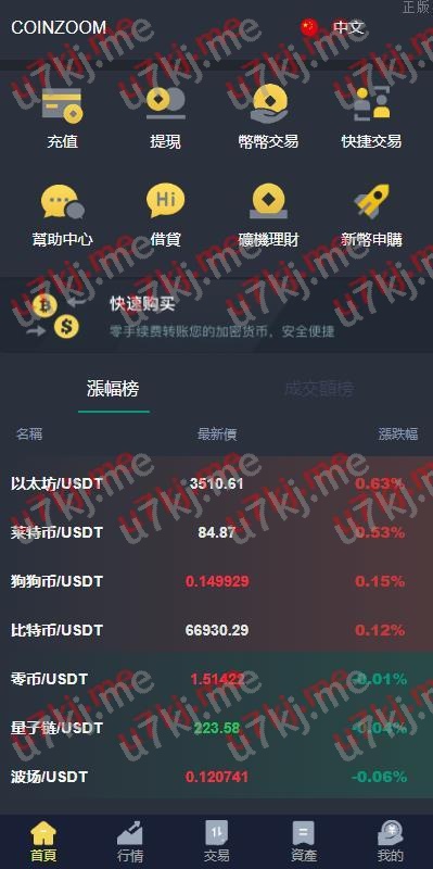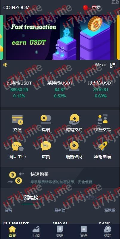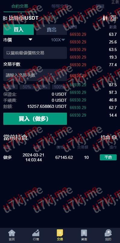 系统支持币币交易、合约交易、期权交易、投资理财、在线客服、新币申购等功能