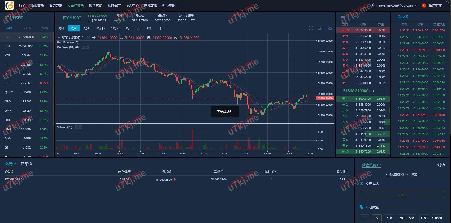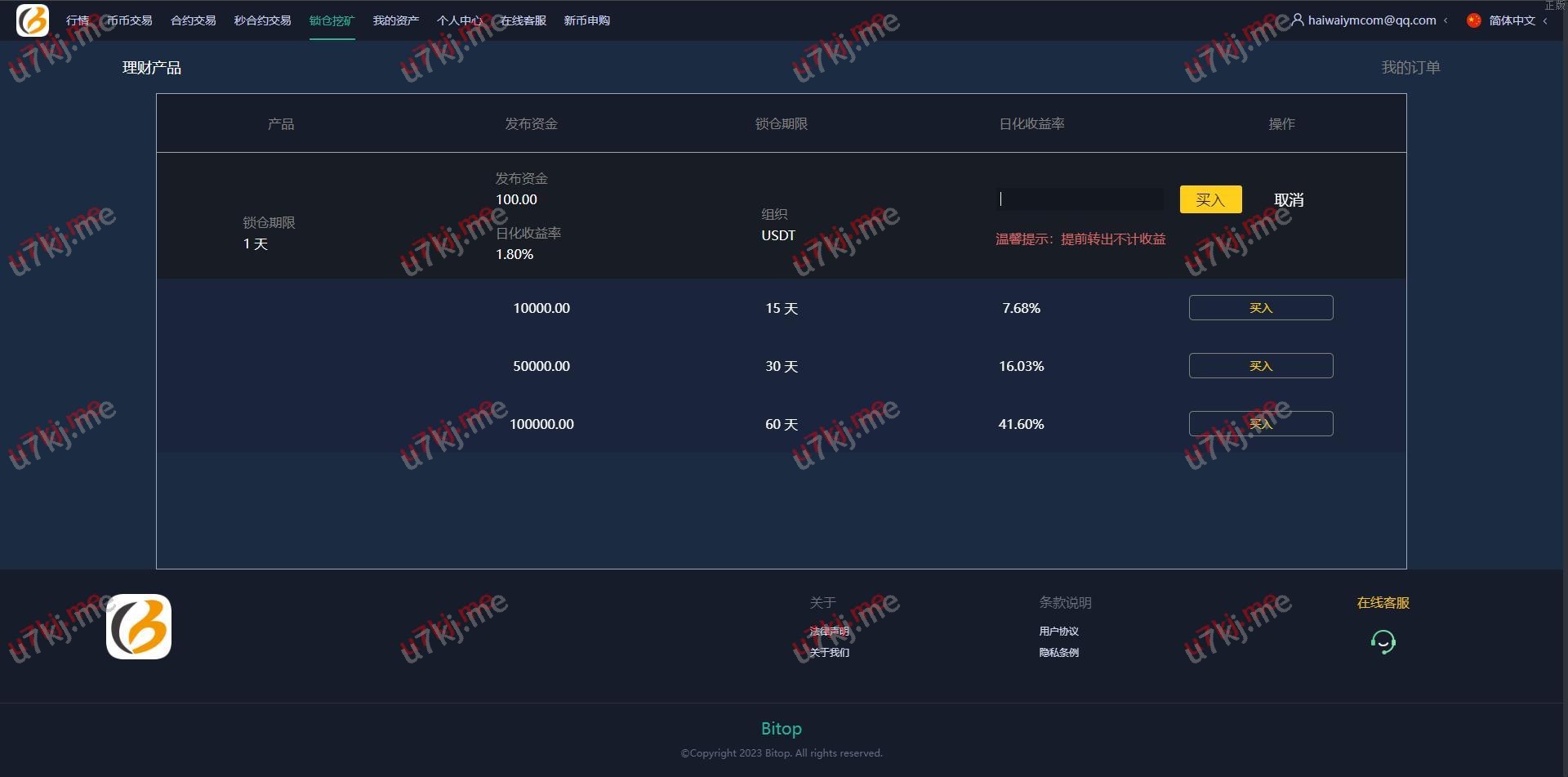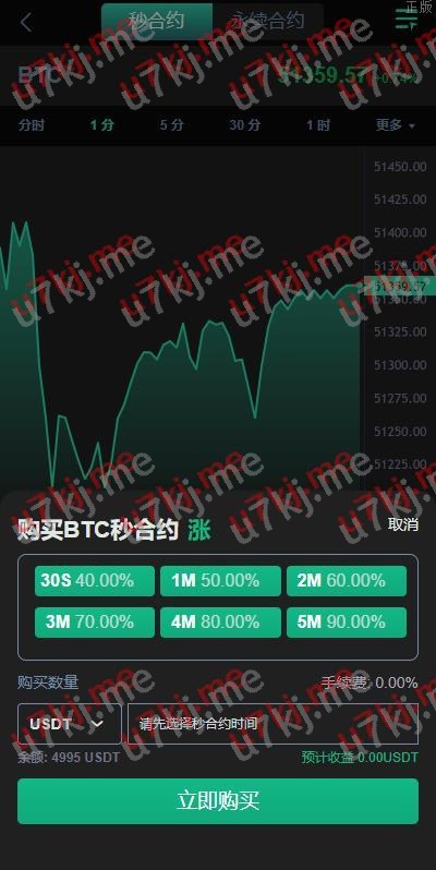 系统功能支持:秒合约、合约、锁仓挖矿、新币认购功能,无平台币