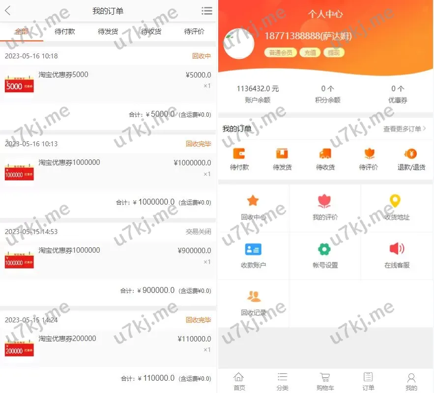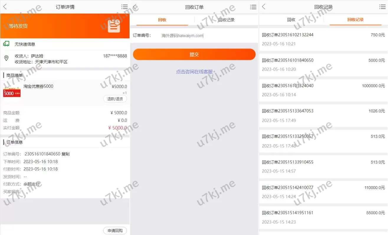 ✅ 订单回收功能:前台提交的订单可直接回收,便于用户管理与操作
