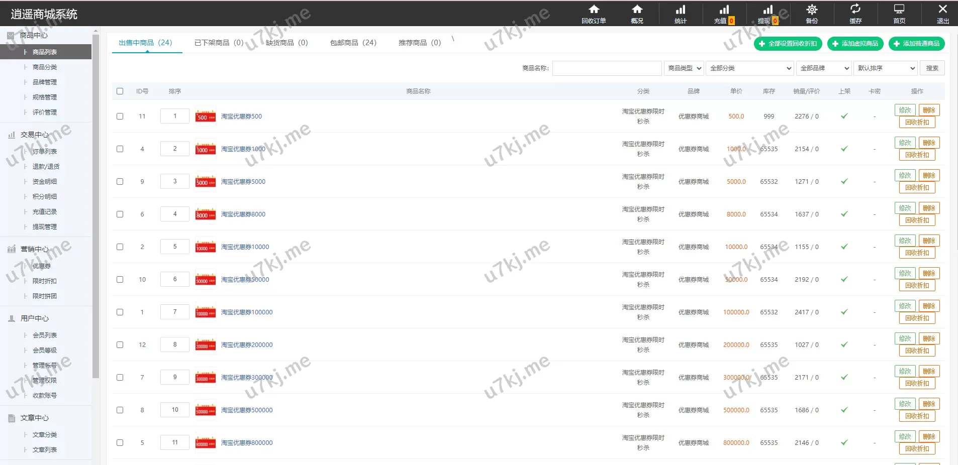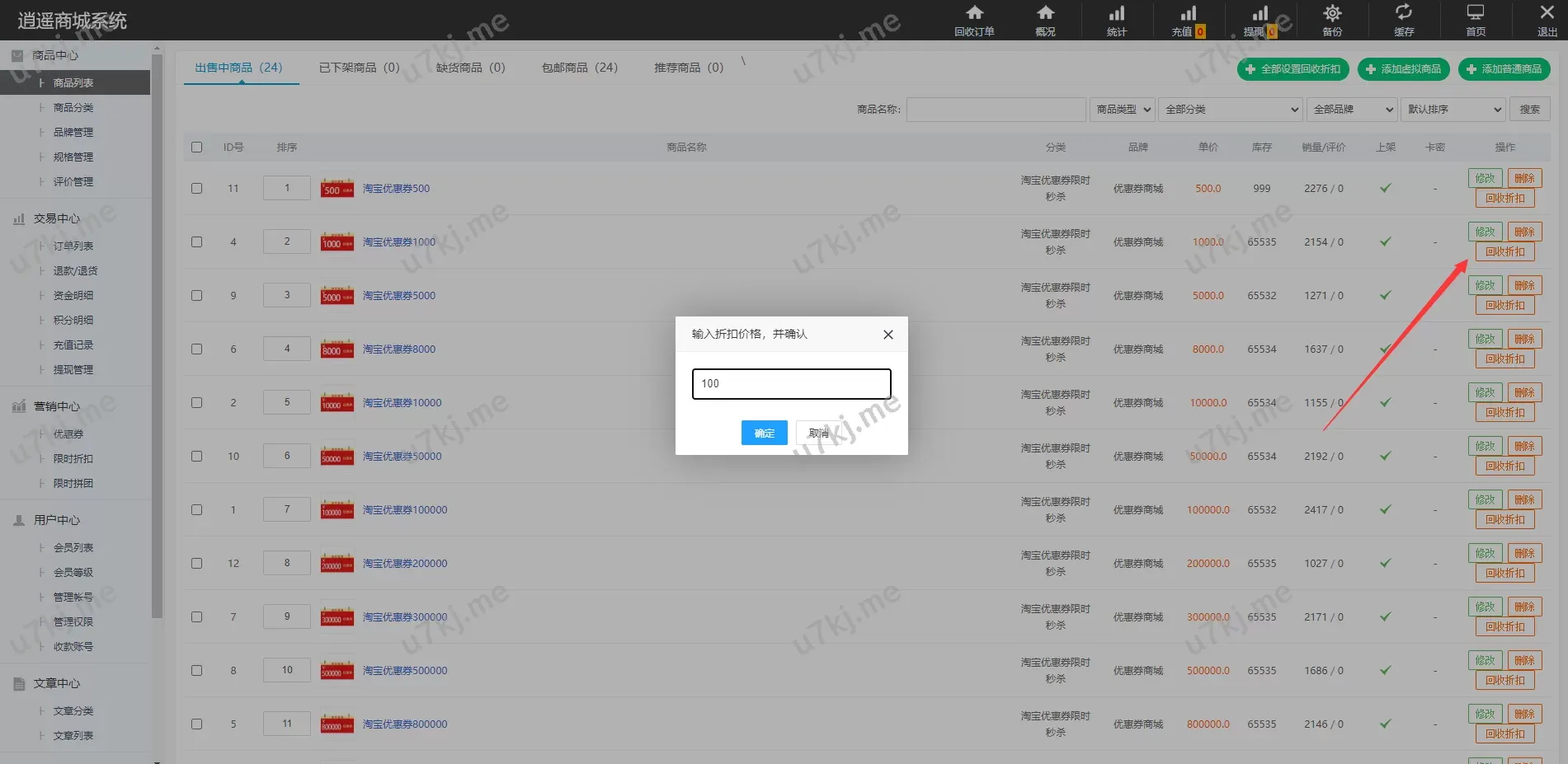 ✅ 商品回收折扣设置:每个商品可以单独设置回收折扣,灵活调整策略