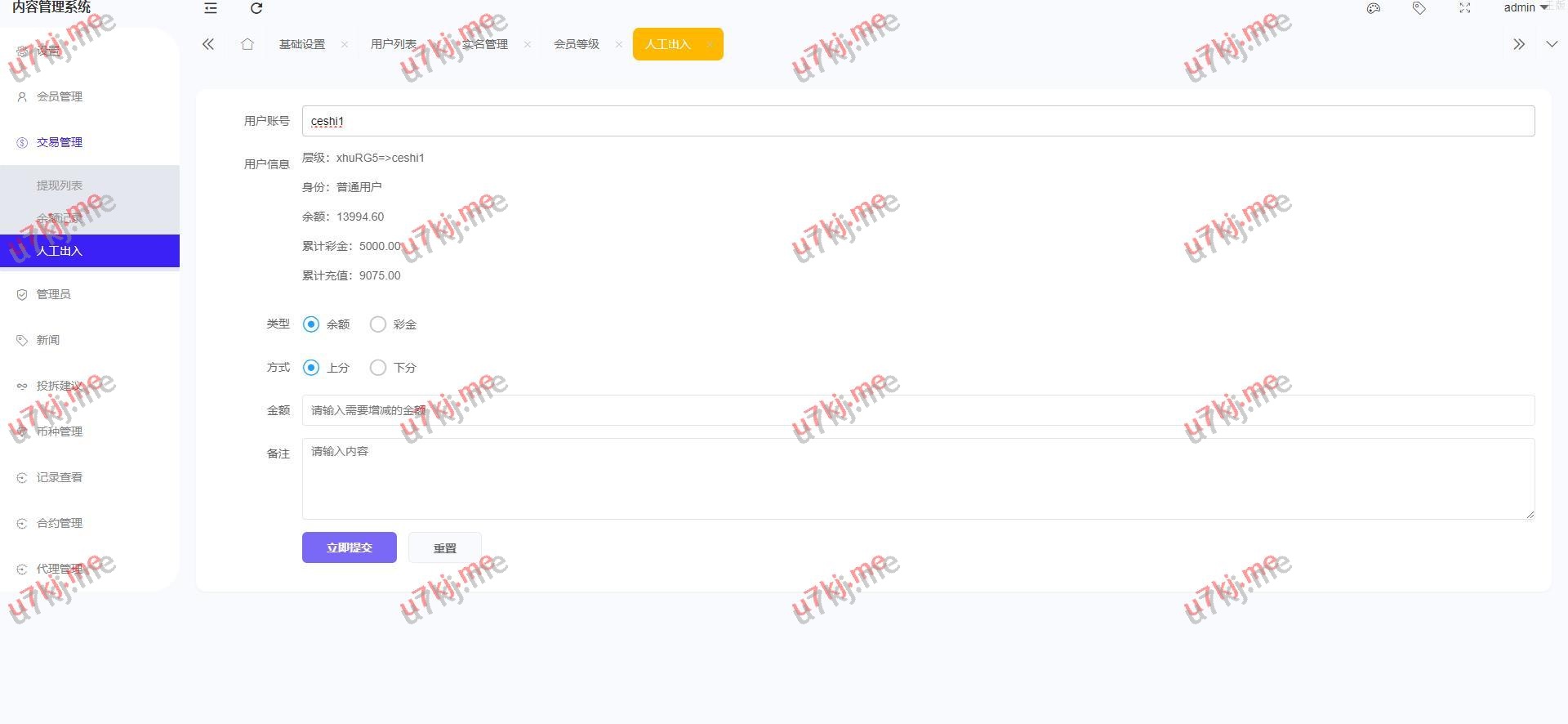 5.增加赠送彩金功能(后台统计不计算赠送彩金的统计)